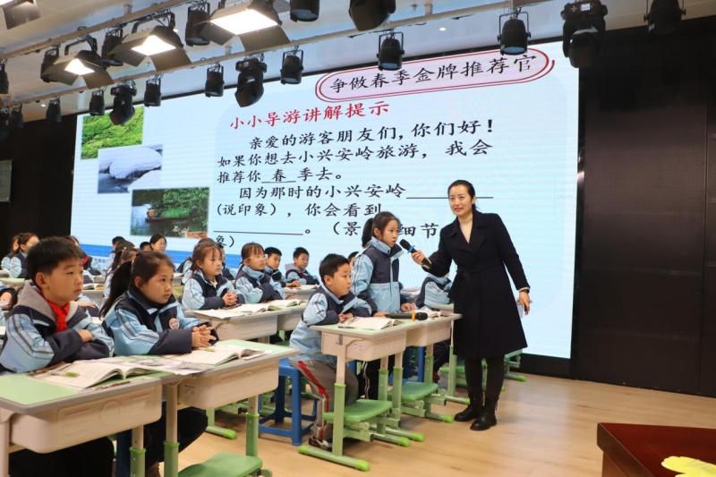語文會場聚焦三年級“壯美山河”單元,徐俊麗、朱冬雨老師執教探究展示課,姚錦老師介紹單元項目化學習設計,實現從知識教學到主題建構的跨越;數學會場圍繞“方向與位置”主題,張婉笛、張希老師執教并分享“小小向導養成記”項目案例,讓學生在真實問題中應用數學。