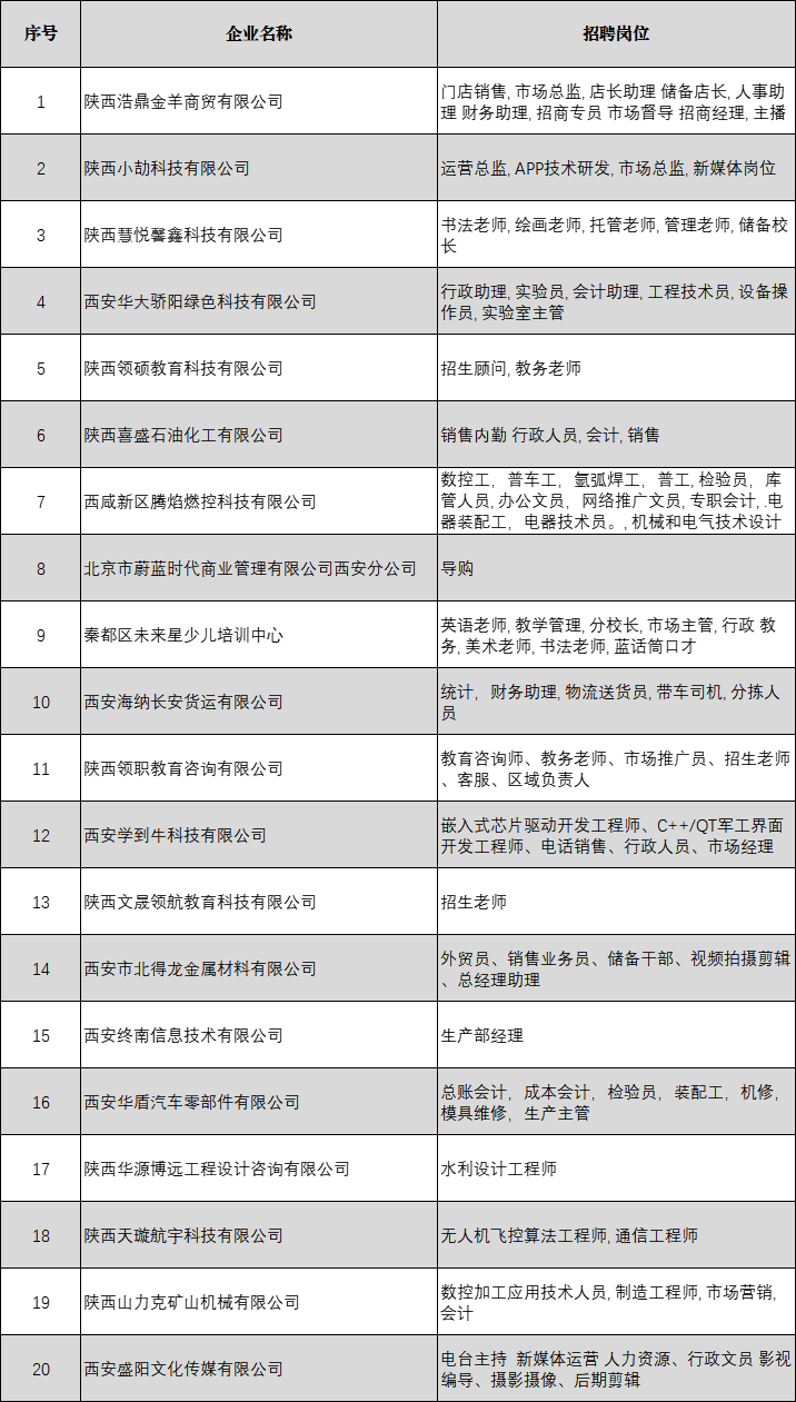招聘企業及崗位名單