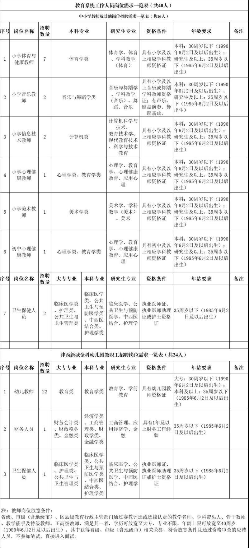 此次公開招聘計劃招聘74人,其中教育系統40人、衛生系統34人,具體崗位及人數見文末附件1、附件2。