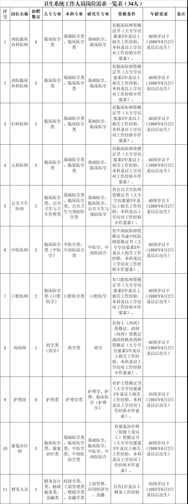 ②護理崗年齡需在35周歲以下(1985年6月2日及以后出生),其他崗位年齡需在40周歲以下(1980年6月2日及以后出生);