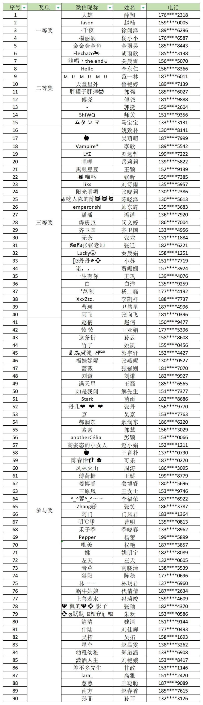 現將獲獎名單公示如下,公示時間為7月3日至7月5日,如對公示有意見的個人,請在公示期內向新區保密辦反映。