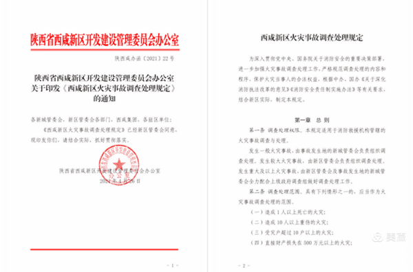根據中辦、國辦《關于深化消防執法改革的意見》《消防安全責任制實施辦法》等有關要求,在前期征求18個行業部門意見建議的基礎上,4月14日,西咸新區管委會召開專題會議審議通過《西咸新區火災事故調查處理規定》,并于4月26日印發全區實施。