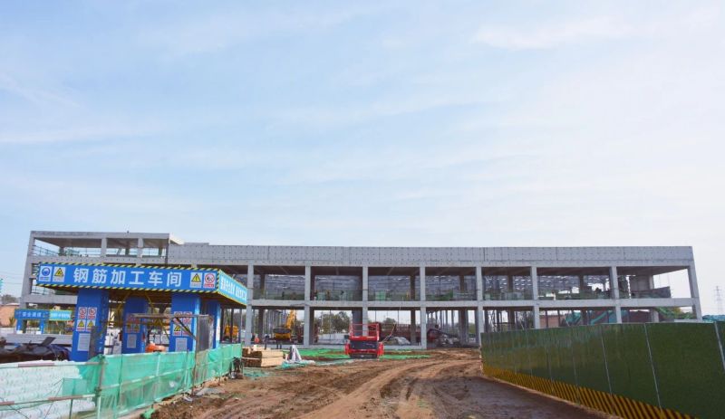 目前,項目一期高12.52米的F廠房鋼結構主體已完成,輔樓辦公樓已實現主體封頂,正在進行屋面頂板安裝、砌體施工、自動化機器人設備基礎施工、ALC蒸壓加氣砂板墻安裝等作業。F廠房預計今年12月完成二次結構施工,明年6月正式投產。